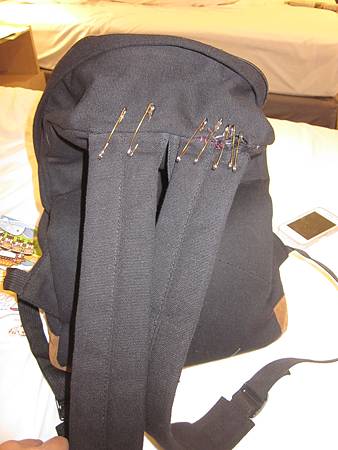 玩了一整天的海洋公園後回到湮波飯店,把買好的別針一一別上,成了這副模樣陪我撐過最後一天的旅程。