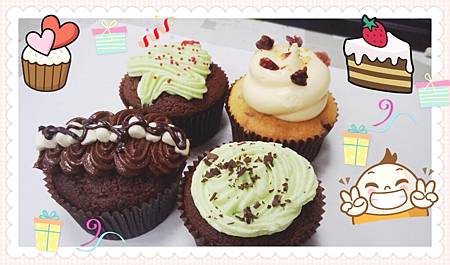 12/25聖誕節。小主管請組員吃杯子蛋糕,一個拳頭大的杯子蛋糕一個要80元,一口二十元,四口解決好浪費呀!